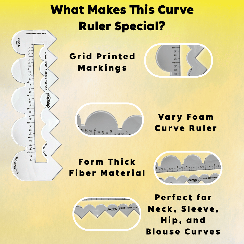 The Professional Multi-Function Design Stencil Scale Ruler is the ultimate instrument engineered for professional tailors, aspiring fashion designers, expert quilters, and dedicated hobbyists. This isn’t just a basic measuring device; it’s a 4-in-1 precision drafting template that simplifies the complex process of creating immaculate, decorative edges and pattern lines. Say goodbye to uneven hems and tedious manual measuring, and welcome effortless, professional results to your workspace.